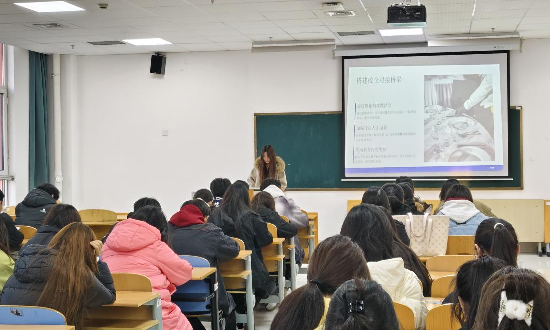此次活动共分为两个环节分别为专业阐述环节和案例分析环节。工作人员带领同学们进行抽签,确定专业阐述次序。专业阐述环节,选手按序进行 8 分钟酒店核心岗位职能、案例分析等主题的 PPT 展示;随后进入评审提问环节,考察选手应变与知识深度,同样精彩;最后,评委老师对同学们的作品进行打分,决出一、二、三等奖,指导老师宣布结果并点评总结。
