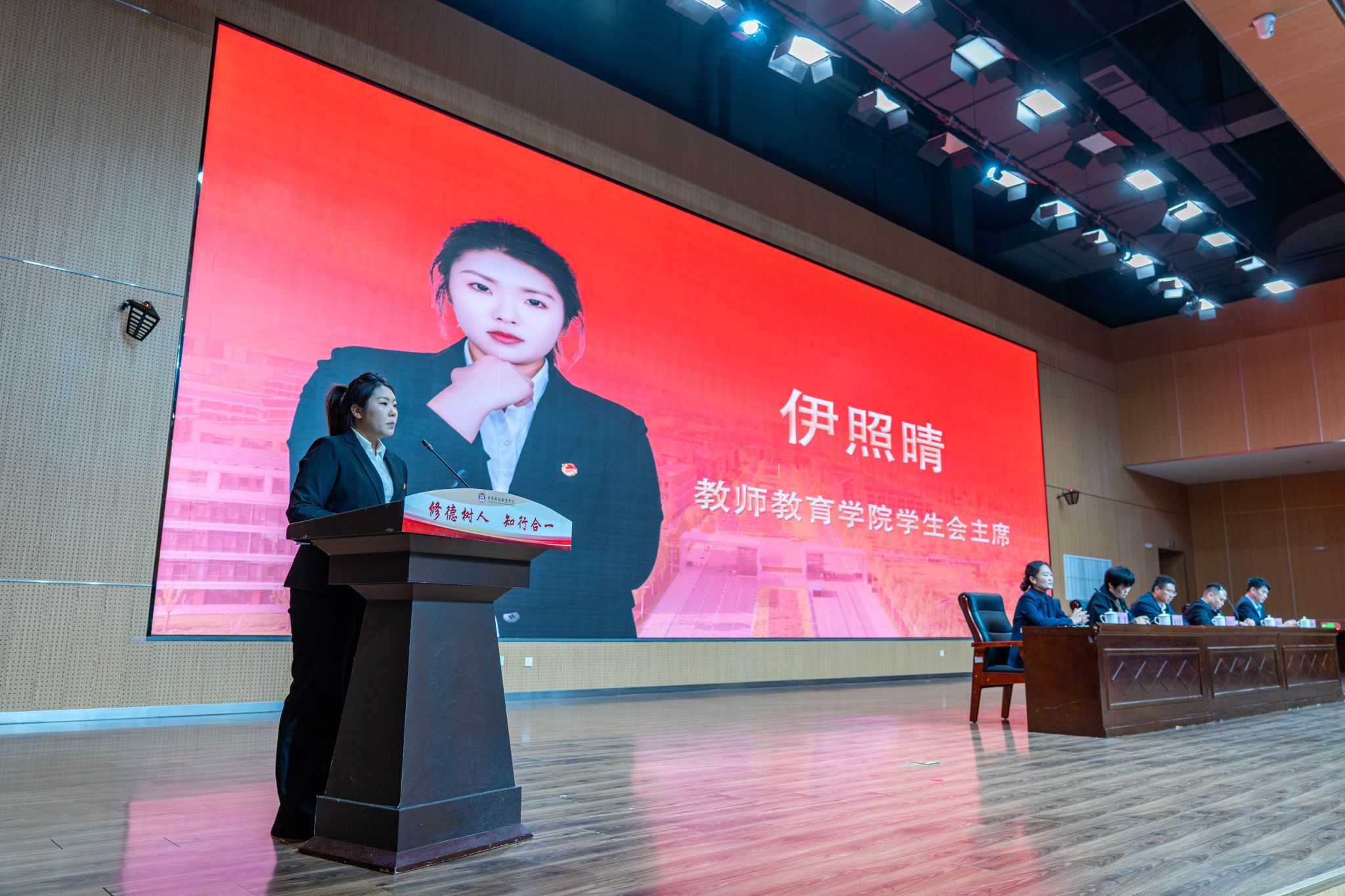 第二十二届学生会主席团成员奚萌娅作了题为《坚定不移跟党走以奋斗姿态担时代使命汇聚青年力量书写崭新篇章》的学生会工作报告。