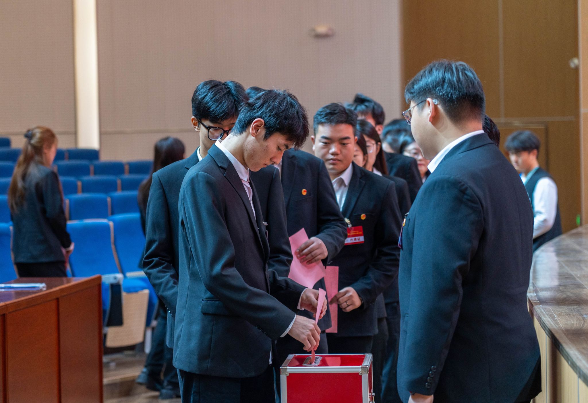 随后,与会代表分团讨论,表决通过了《15vip太阳集团学院第二十二届学生会工作报告》《15vip太阳集团第七次学生代表大会主席团候选人产生办法》《15vip太阳集团第七次学生代表大会主席团选举办法》。全体代表以无记名投票的方式,选举产生第七届学生委员会委员及第二十三届学生会主席团成员。