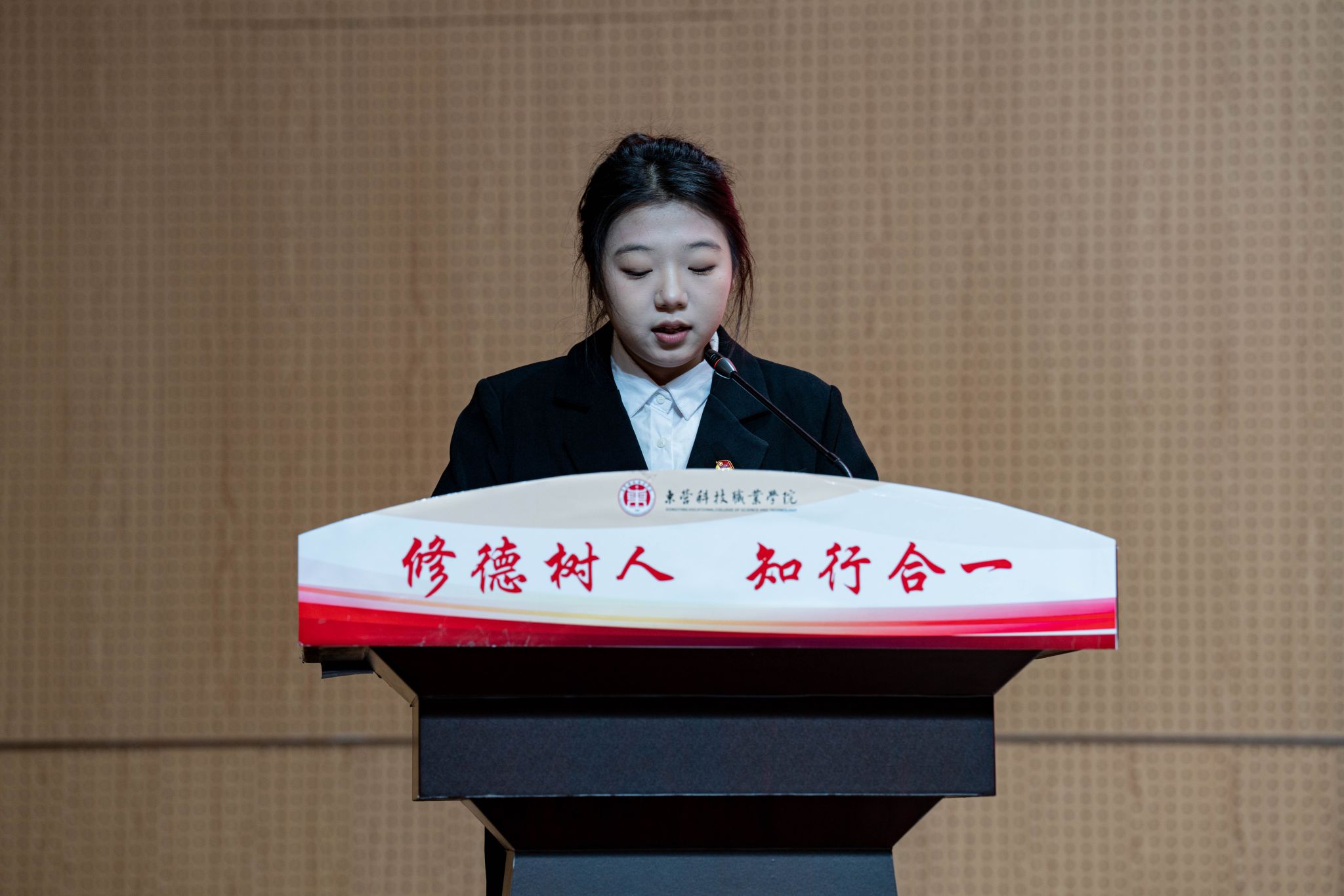 徐兴习代表学校党委向大会召开表示祝贺,肯定了上一届学生会在思想引领、权益维护、校园文化等方面的成效。他结合党的二十届四中全会精神与“十五五”规划展望,向全校学子提出三点希望:坚定理想信念,筑牢思想根基,深刻领悟“两个确立”的决定性意义,将个人理想与国家战略紧密结合;深耕专业技能,勇担时代使命,把专业所学转化为报国所能,努力成为适配地方产业链需求的高素质技术技能人才,为推进中国式现代化建设打下坚实基础;投身实践锻炼,实现全面发展,在实践中深刻理解国情民情,锤炼组织协调、沟通协作等综合能力。希望同学们以学代会为契机,在推进中国式现代化的壮阔征程中勇毅前行,书写无愧于时代的青春篇章。