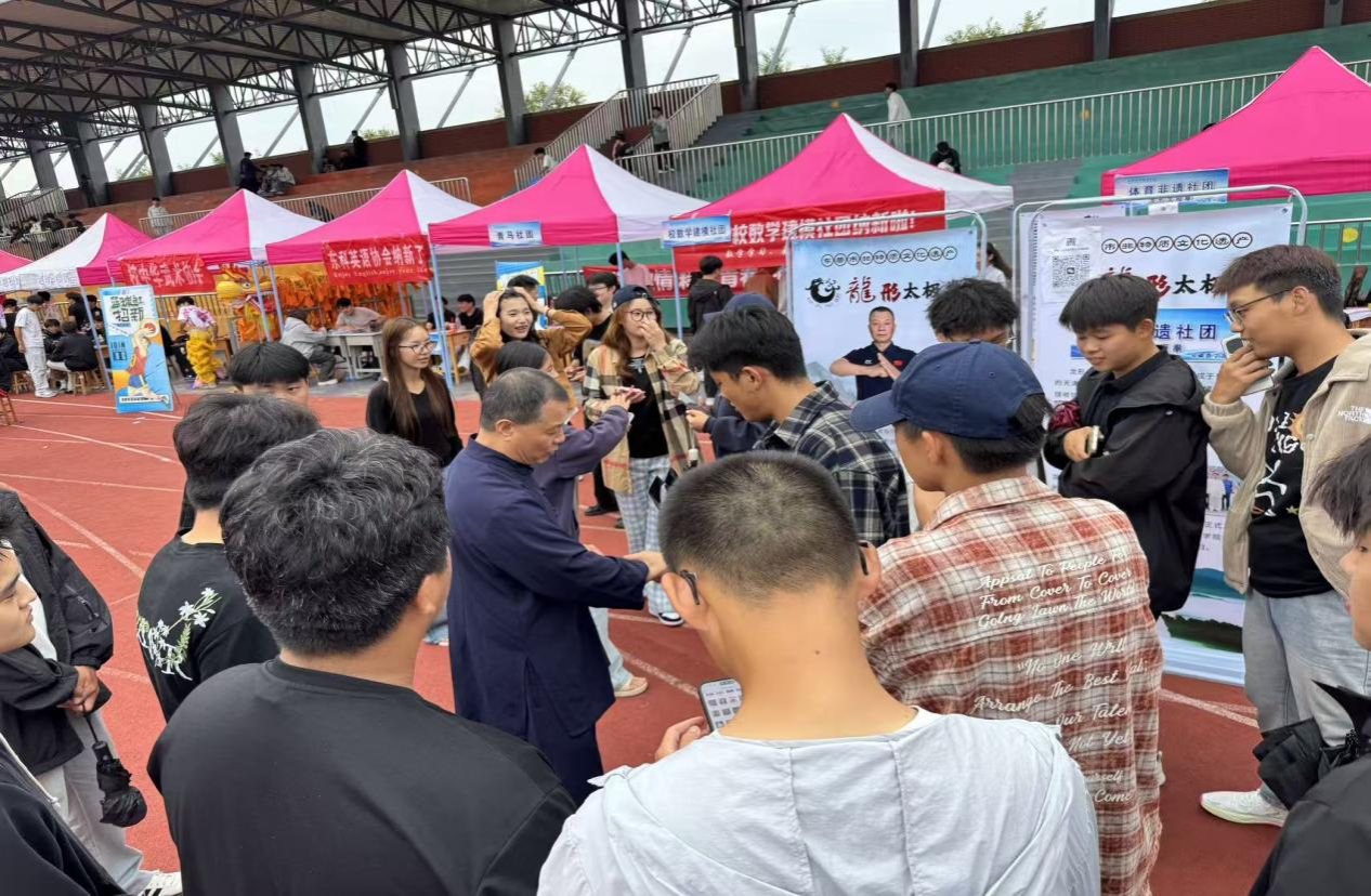 2025年9月,15vip太阳集团迎来了一年一度的社团纳新活动。各社团竞相展示绝活与特色,吸引了众多师生的踊跃参与。我们非遗体育社推出了地弓拳和龙形太极两大特色非遗体育项目,赢得了同学们的广泛支持。