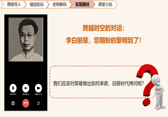 通过AI实现与革命先辈“跨时空对话”和《兵圣孙武》动画呈现,将抽象历史与思想转化为可感知、可互动的场景,让学生从被动听讲转为沉浸共情,激发探索欲,使思政课成为“受欢迎的必修课”。这种体验不仅传递知识,更实现价值浸润与情感共鸣,推动红色基因和社会主义核心价值观真正“入耳、入脑、入心”,达成思政教育根本目标。