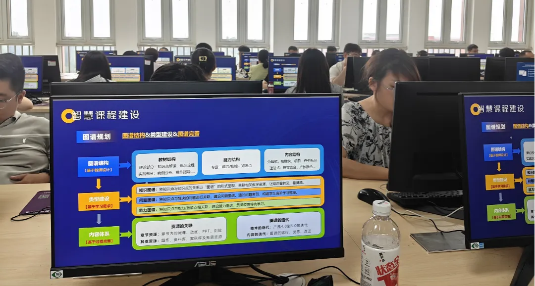 作为智慧教学的重要载体,学习通平台集合了大数据分析、智能交互、资源整合等核心功能。为此,北京世纪超星信息技术发展有限责任公司为我校思政教师开展了一场全面且深入的培训活动。此次培训紧扣思政课教学痛点,构建了“技术赋能+教育创新”的双轨体系:通过建课模块的系统指导,教师们掌握了虚拟仿真、情景模拟等数字化课程开发技巧;依托多元图谱建设(知识图谱、问题图谱、能力图谱),实现了教学内容与职业标准的精准对接;借助AI助教、智能学情诊断等工具,构建起“课前-课中-课后”全流程智慧教学闭环。此次培训聚焦于学习通建课、关键功能应用、多元图谱建设(知识图谱、问题图谱、能力图谱)以及AI功能等核心内容,旨在推动学校教学模式创新,提高教学质量。