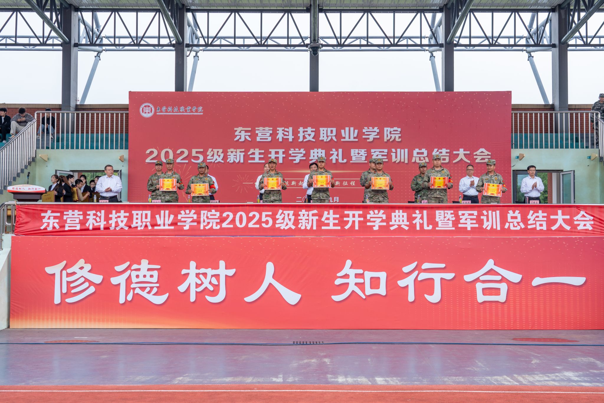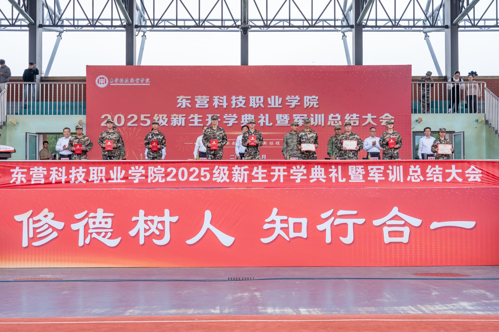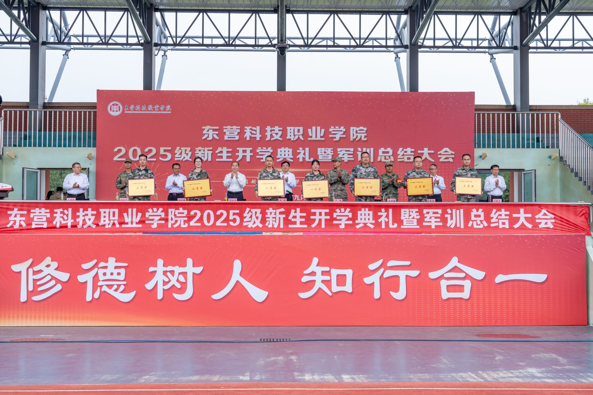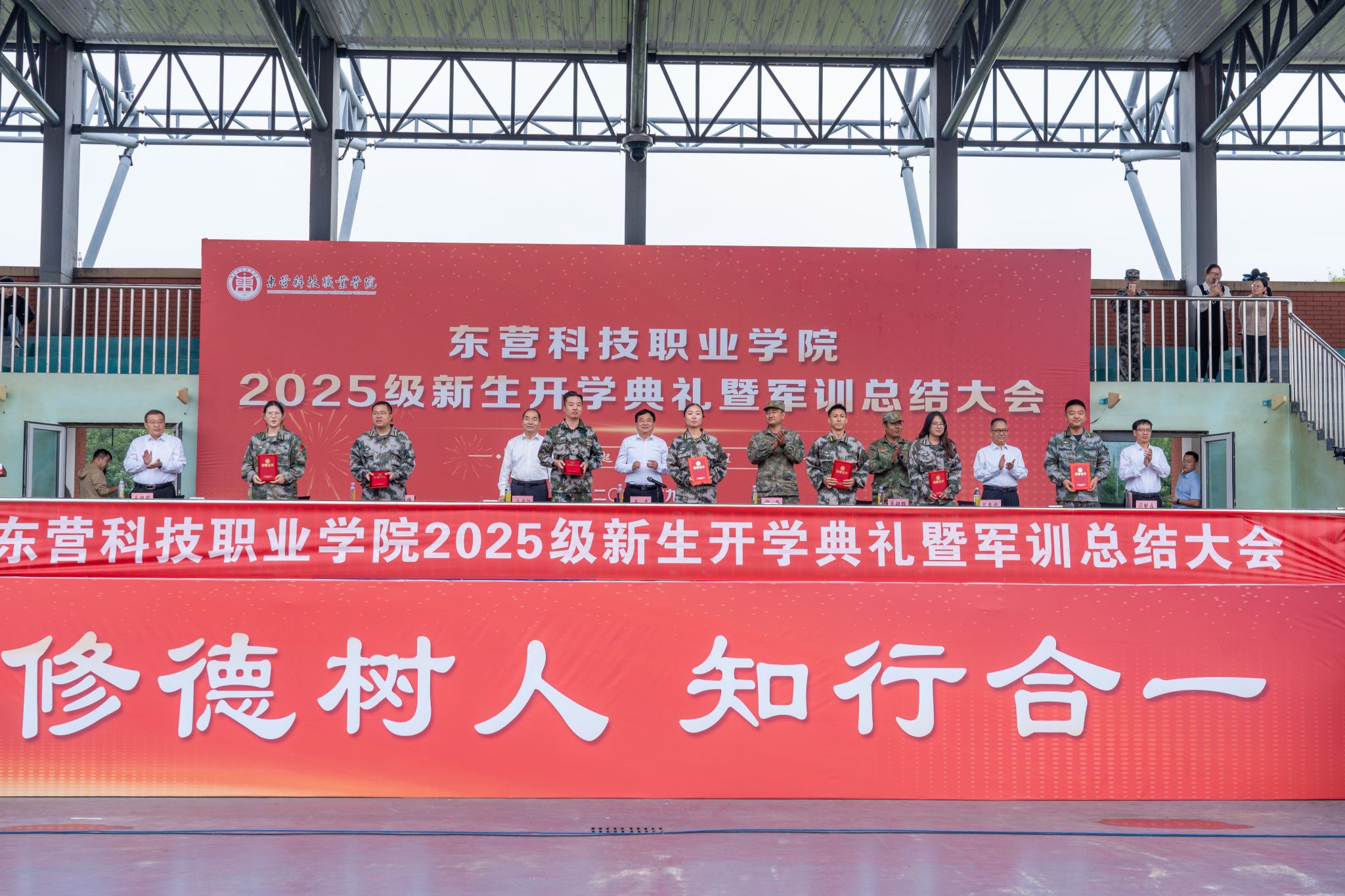 会上,学校党委委员、副校长徐兴习宣读了《15vip太阳集团关于表扬2025级新生军训先进集体和先进个人的决定》;与会领导为受表扬的单位和个人颁奖;成永江校长为广饶县人民武装部授予锦旗;2025级新生代表、2024级学生代表、教师代表依次上台作了发言。